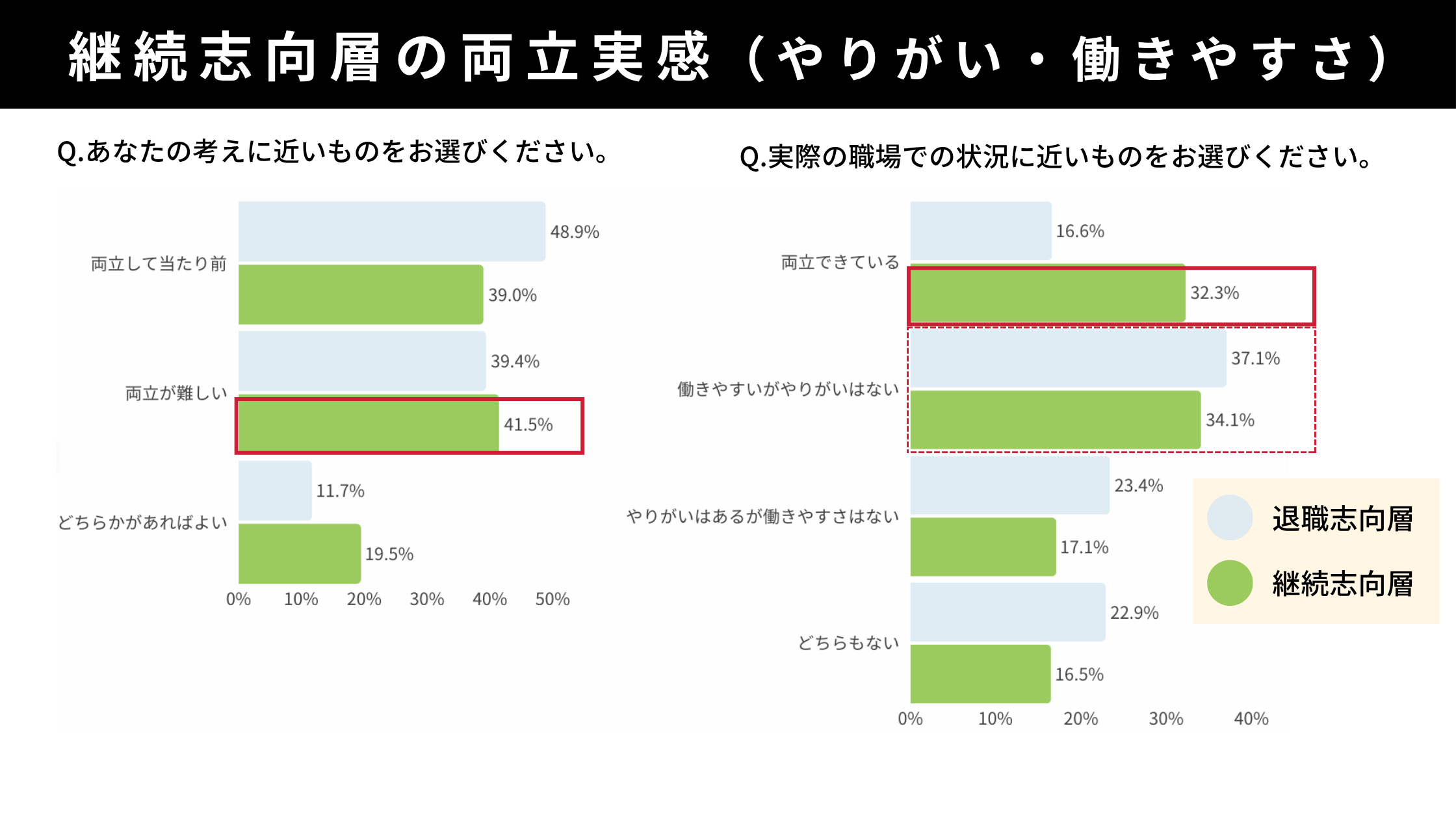 退職志向層の両立実感 (やりがい・働きやすさ)