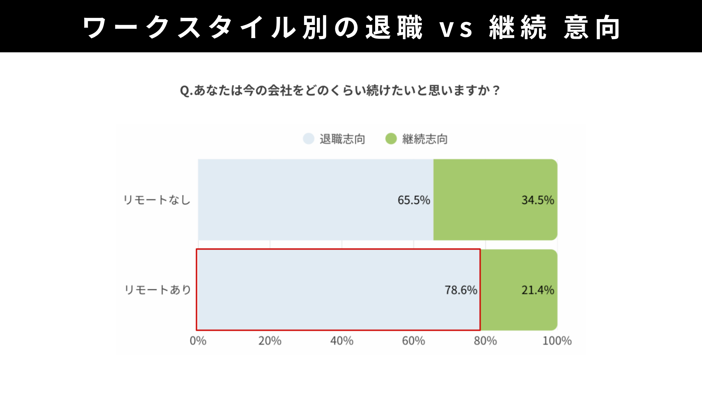 ・リモートあり層は退職志向が強く、リモートなし層は継続志向が比較的高い。